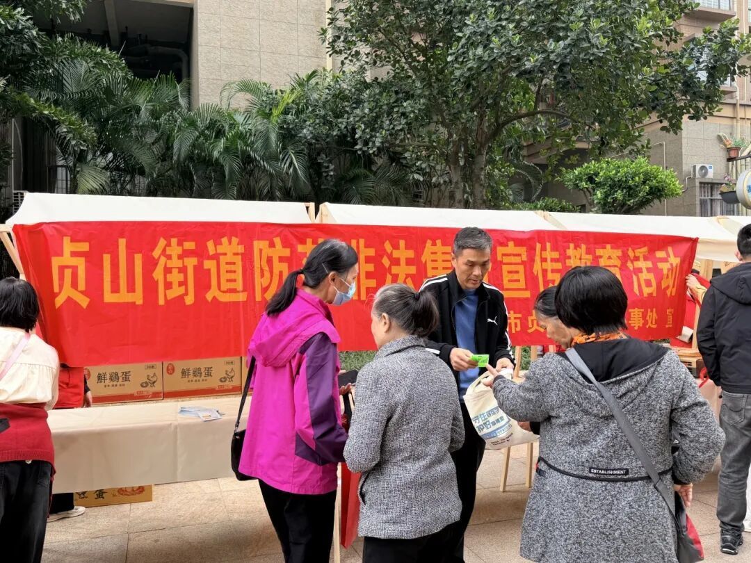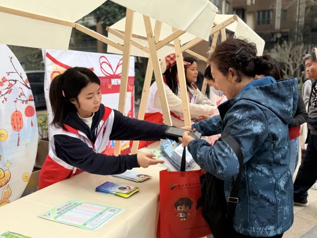 作为本次游园会五大板块之一的宣传科普板块,活动现场设立了多个宣传展位,将安全知识、政策科普融入新春氛围。四会市城市管理和综合执法局工作人员通过发放宣传文创产品、现场讲解等形式,向居民普及垃圾分类、燃气安全等知识,引导居民树立绿色环保、安全用气的观念;四会市贞山街道办事处开展防范非法集资宣传教育活动;共青团四会市委员会亦来到现场,派发文创袋子等小礼品,传递青春正能量。