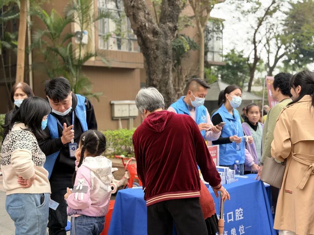 为切实满足居民的实际需求,本次游园会集中提供了多项便民利民服务。四会市人民医院医共体总医院、贞山分院、江谷分院的专家团队,于碧海湾社区健康服务驿站开展了免费健康义诊活动。专家们以耐心的态度为居民进行问诊查体,并解答居民的疑问,同时普及健康养生知识,使居民无需离开社区即可享受专业的医疗服务。此外,四会市恒博口腔也提供了免费口腔检查服务。医护人员认真细致地为居民检查口腔健康状况,发放与口腔护理相关的小礼品及科普资料,以增强居民的口腔健康意识。